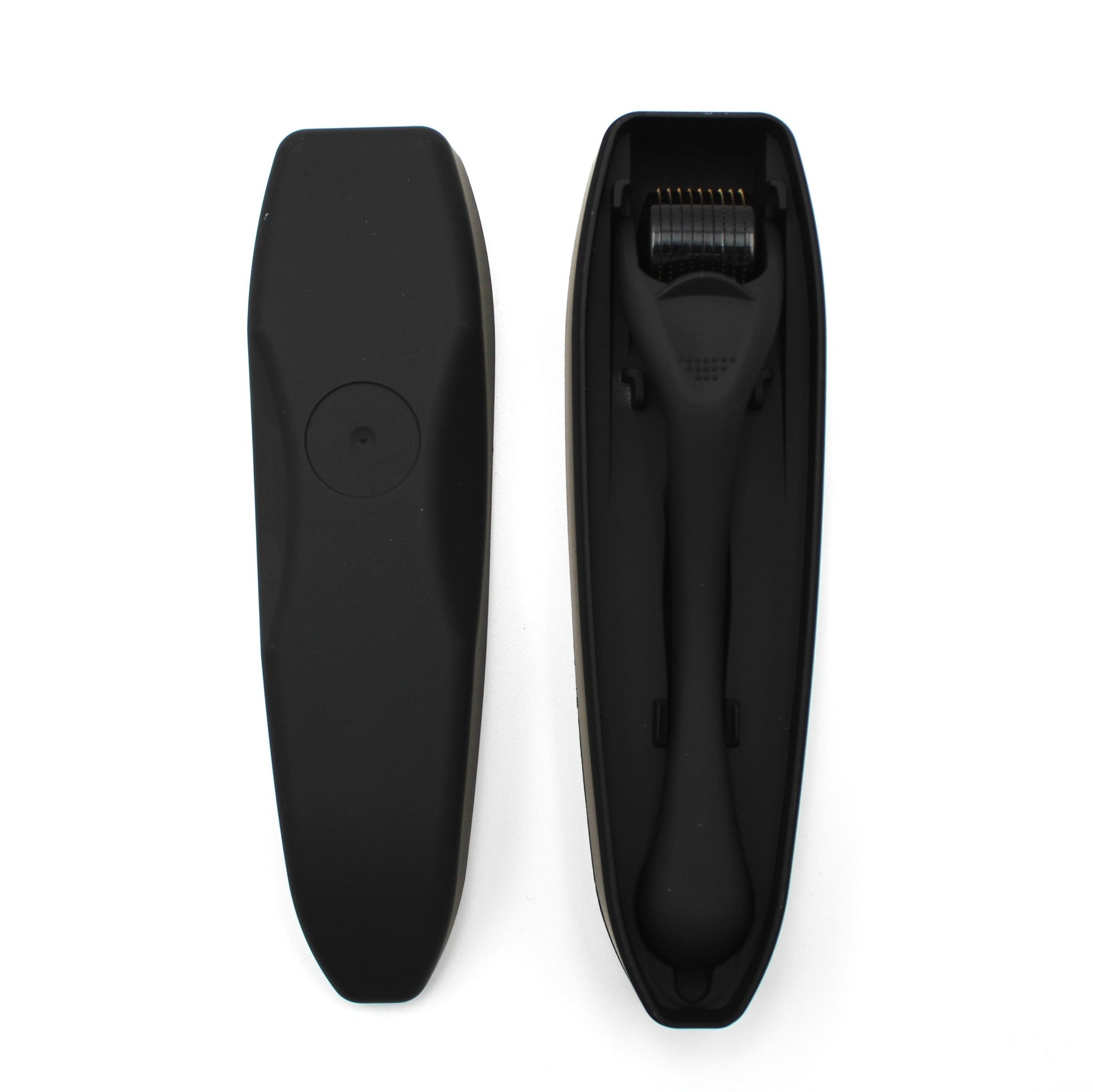 Black grooming derma roller on a white background